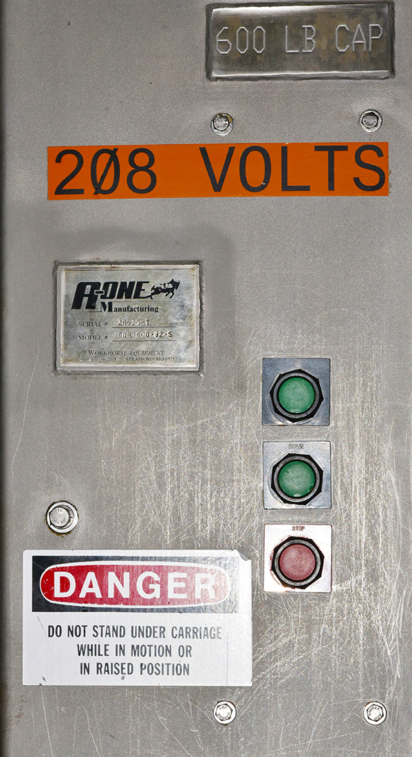 As of this writing, this meat buggy lift & dump is in stock at ALARD, in EXCELLENT operational, mechanical, electrical & cosmetic condition, available for timely shipment.